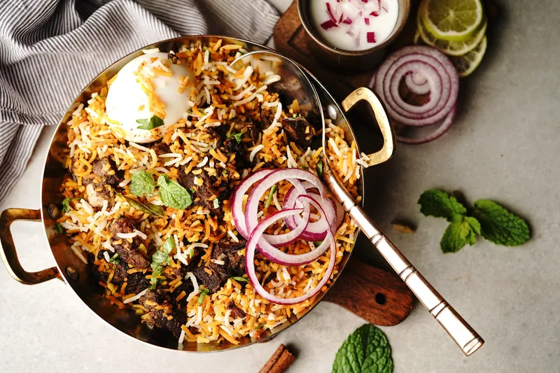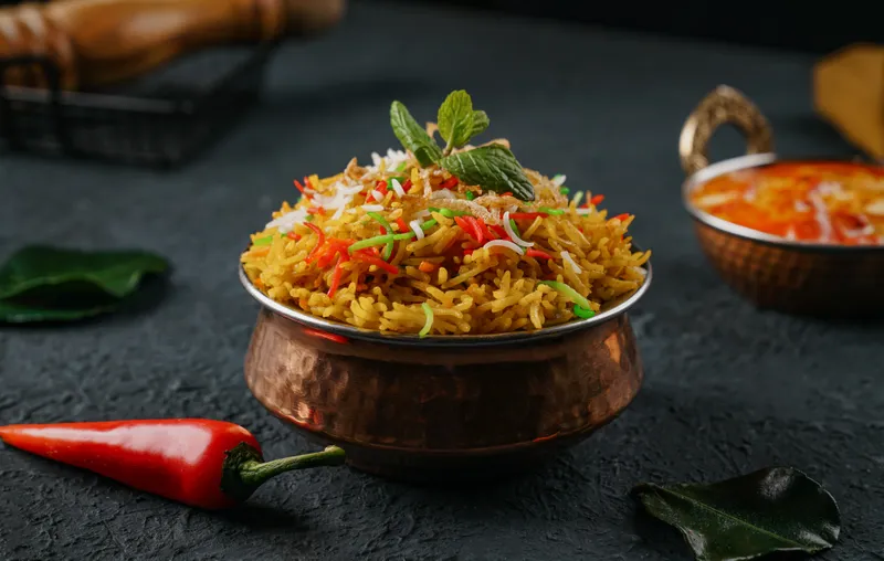 Aromatic basmati rice from the foothills of the Himalayas cooked with chicken meat, special biryani masala, and saffron. A meal