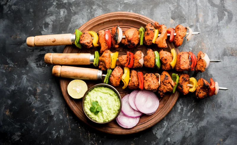 The white meat version of Tandoori Chicken, Chicken Tikka is chicken breast prepared by roasting chicken marinated in yogurt and Indian spices in a Tandoor. (GF)